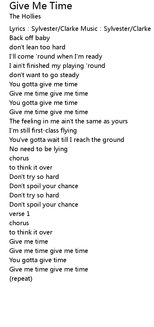 | Give me time give me time | |