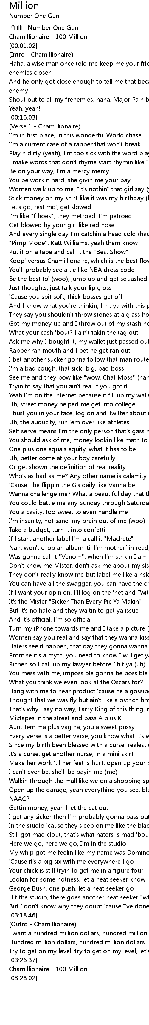 | [03:19.72] | I want a hundred million dollars, hundred million dollars |
