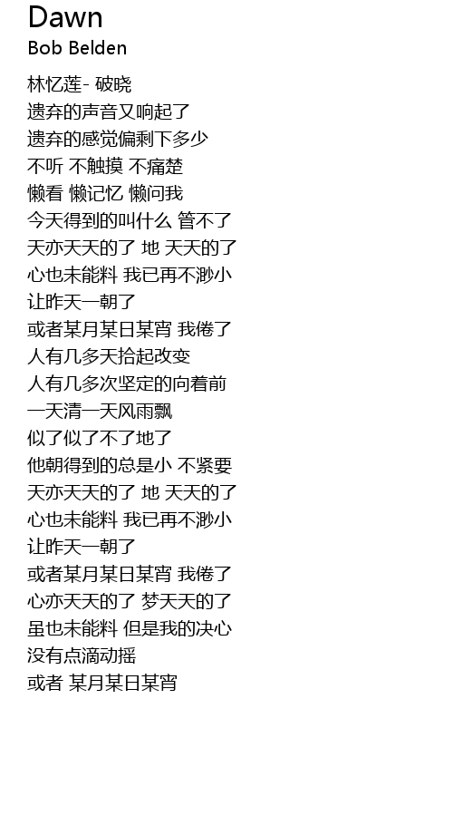 | [04:05.11] | 心亦天天的了 梦天天的了 |