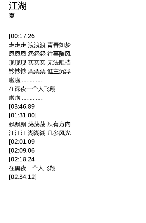 | [03:17.68][02:09.06] | jiang hu zhong ji duo feng lang cang sang |