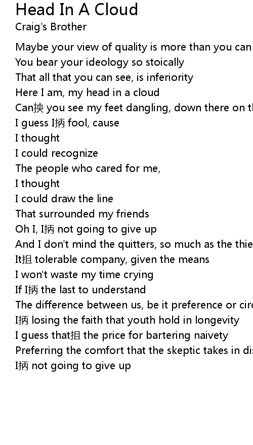 | 歌曲 | Head In A Cloud |