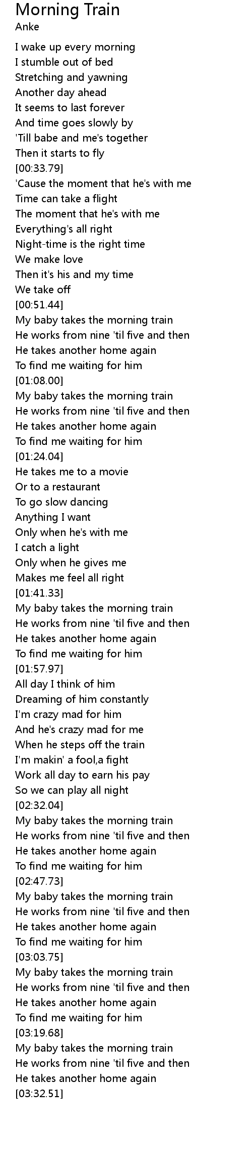 My baby takes the morning train |