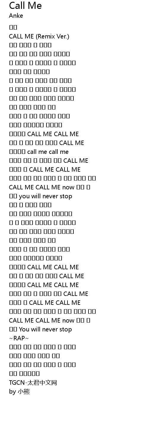 | [02:03.28] | CALL ME |