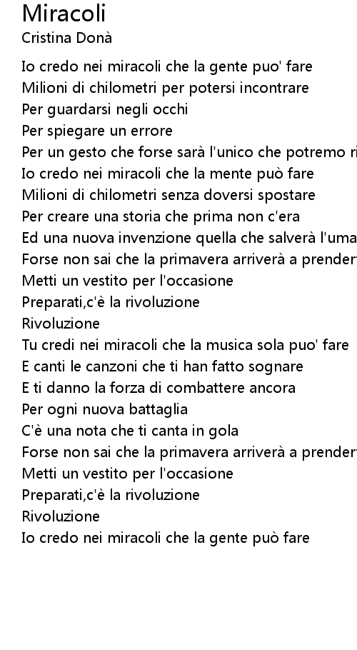 | Tu credi nei miracoli che la musica sola puo' fare | |