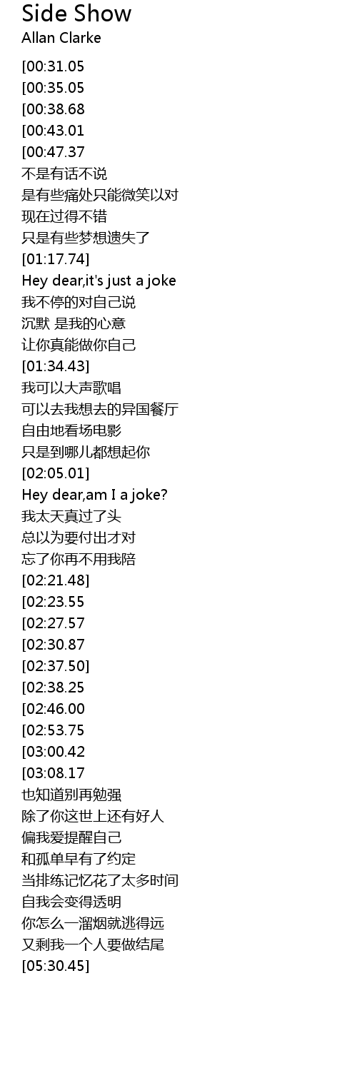 | [03:55.33][00:31.05] | Hey dear,it's just a joke |