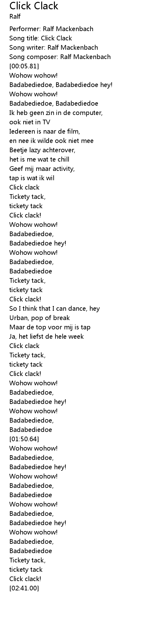 | [00:02.86] | Song title: Click Clack |