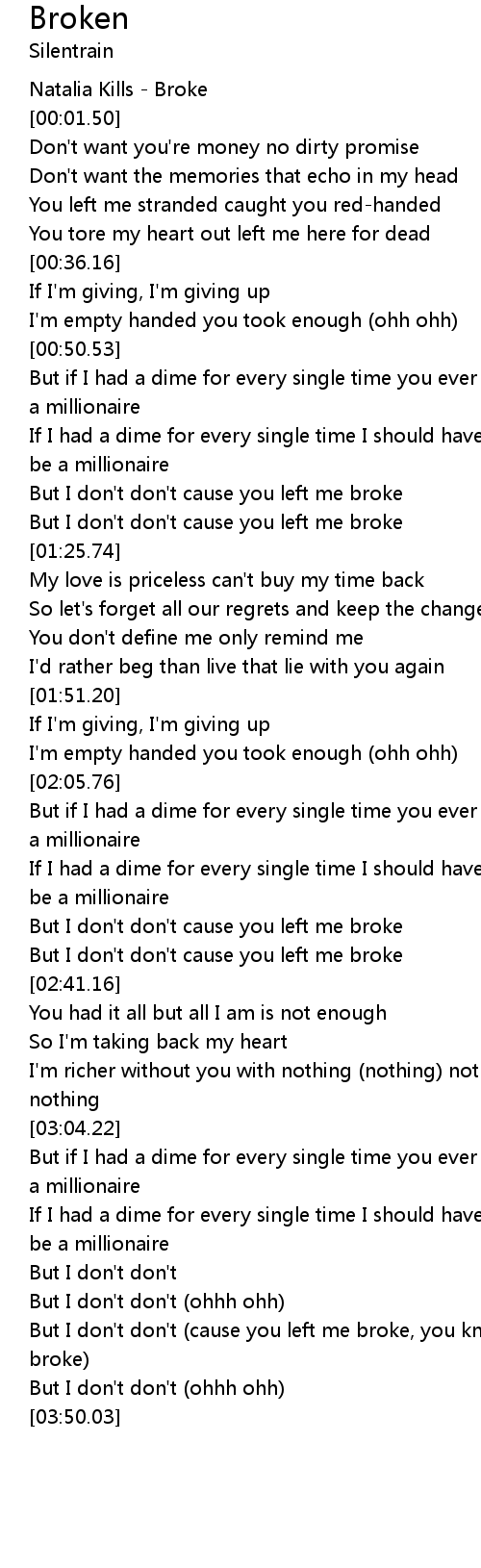 But I don't don't (cause you left me broke, you know you left me broke) |