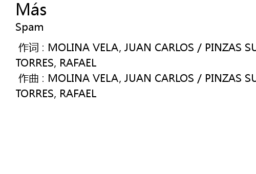 | [00:00.000] | 作词 : MOLINA VELA, JUAN CARLOS / PINZAS SUEIRO, JUAN / CERVERA TORRES, RAFAEL |