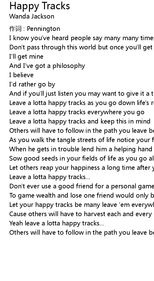 | Let your happy tracks be many leave 'em everywhere you go | |