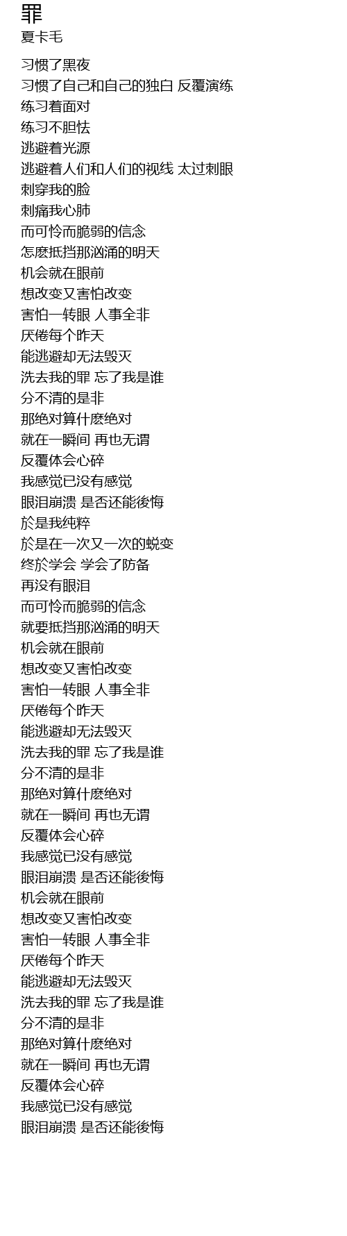 | [03:32.700] | 洗去我的罪 忘了我是谁 |