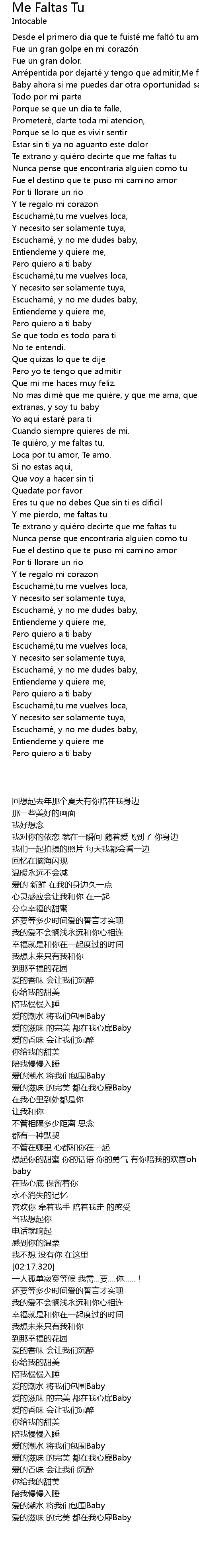 | [02:25.830] | Te extrano y quié ro decirte que me faltas tu |