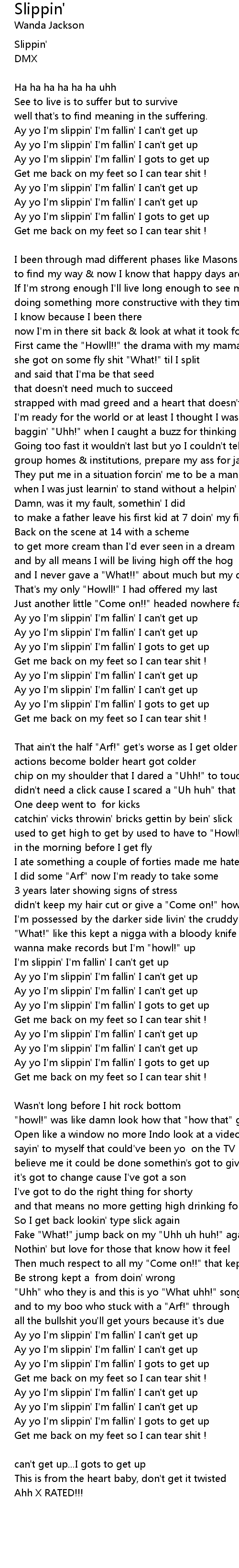 Ay yo I'm slippin' I'm fallin' I gots to get up |