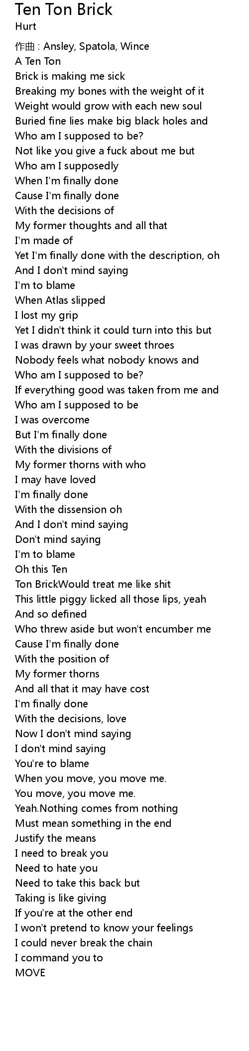 | Ton BrickWould treat me like shit | |