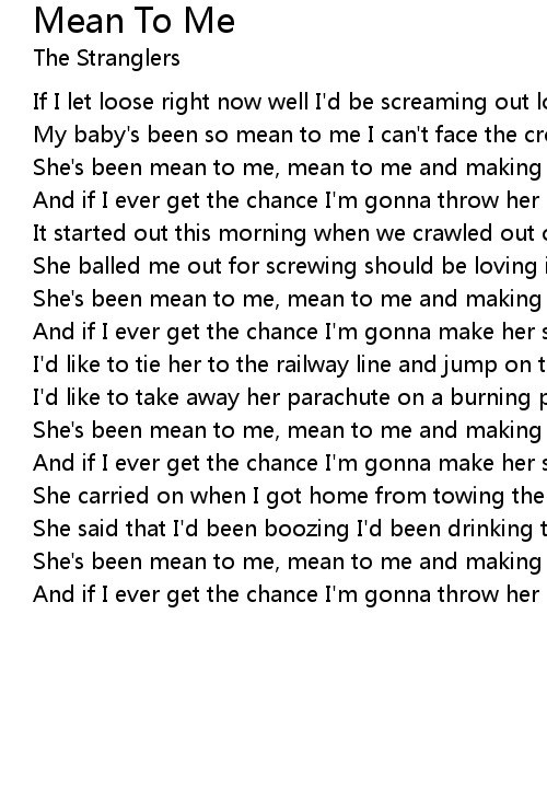 She's been mean to me, mean to me and making me blue |