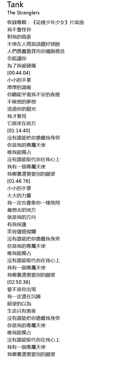 | [00:24.34] | 天使在人間是該藏好翅膀 |