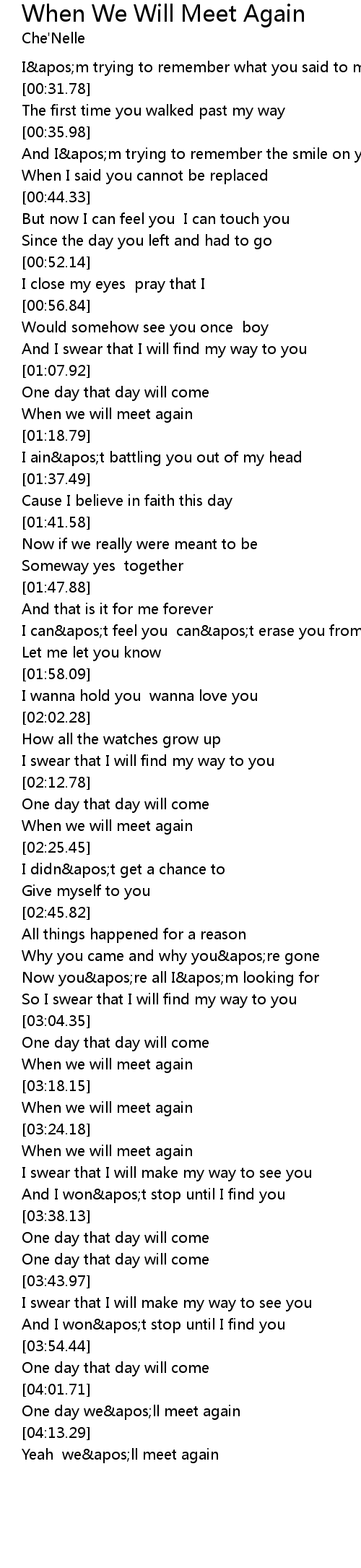 When we will meet again |