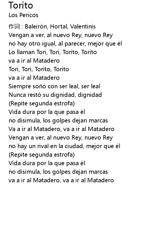 | 歌曲 | Torito |