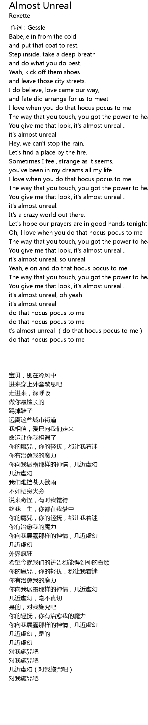 | [03:35.99] | t's almost unreal (do that hocus pocus to me) |