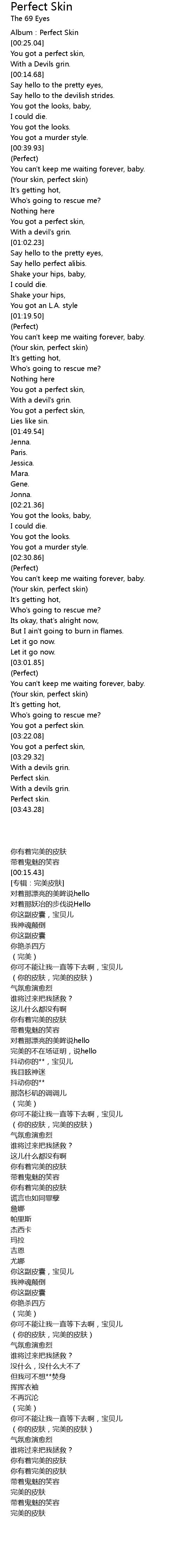 | [00:45.30] | (你的皮肤,完美的皮肤) |