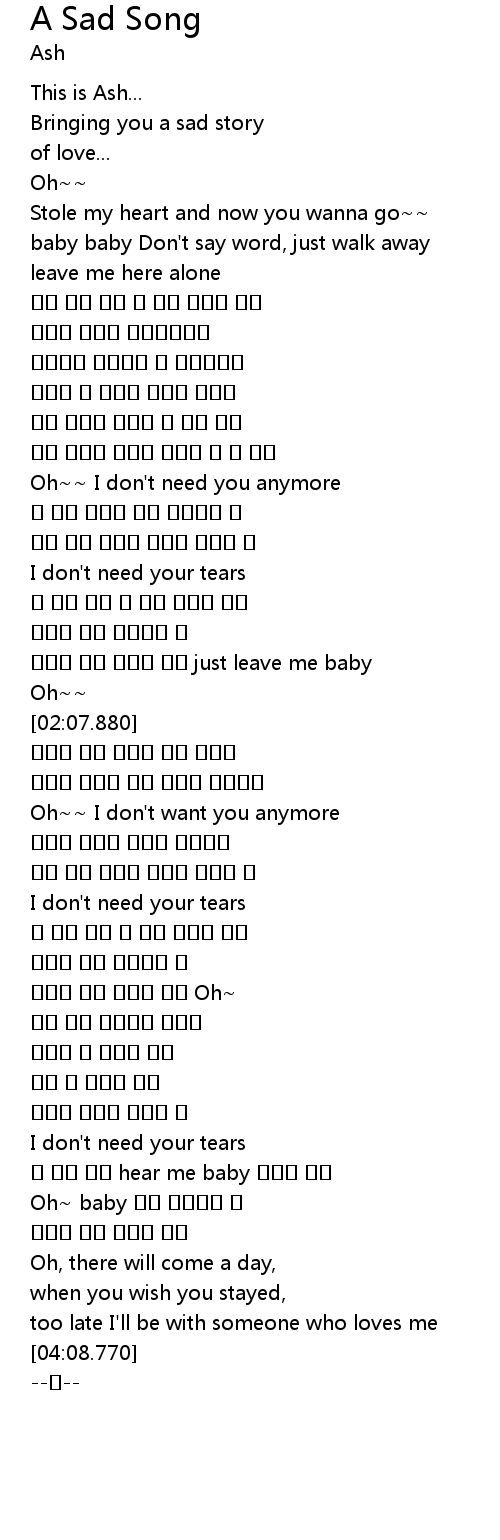 | [01:26.410] | Oh~~ I don't need you anymore |