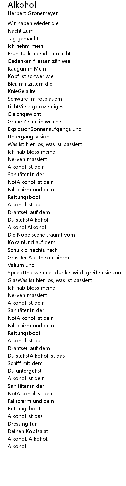 | Alkohol, Alkohol, | |