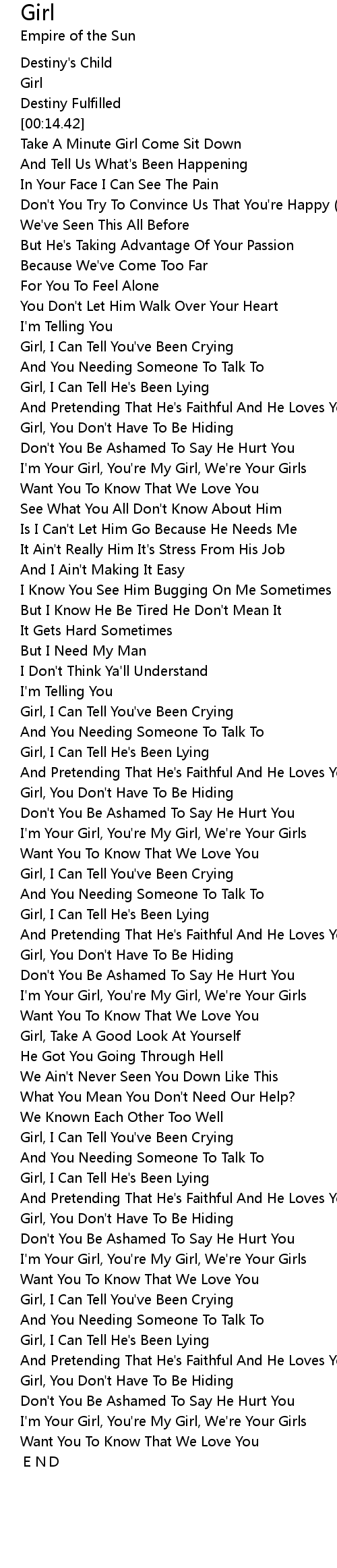 | [01:41.57] | I'm Your Girl, You're My Girl, We're Your Girls |