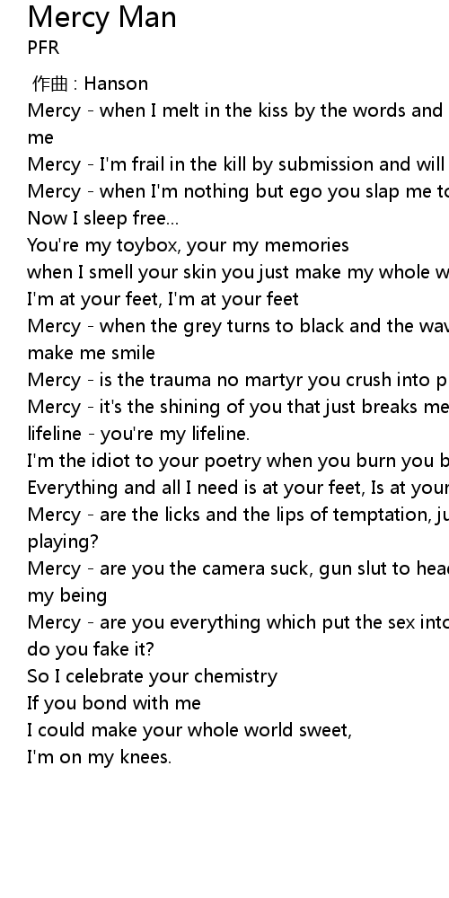 | 歌曲 | Mercy Man |