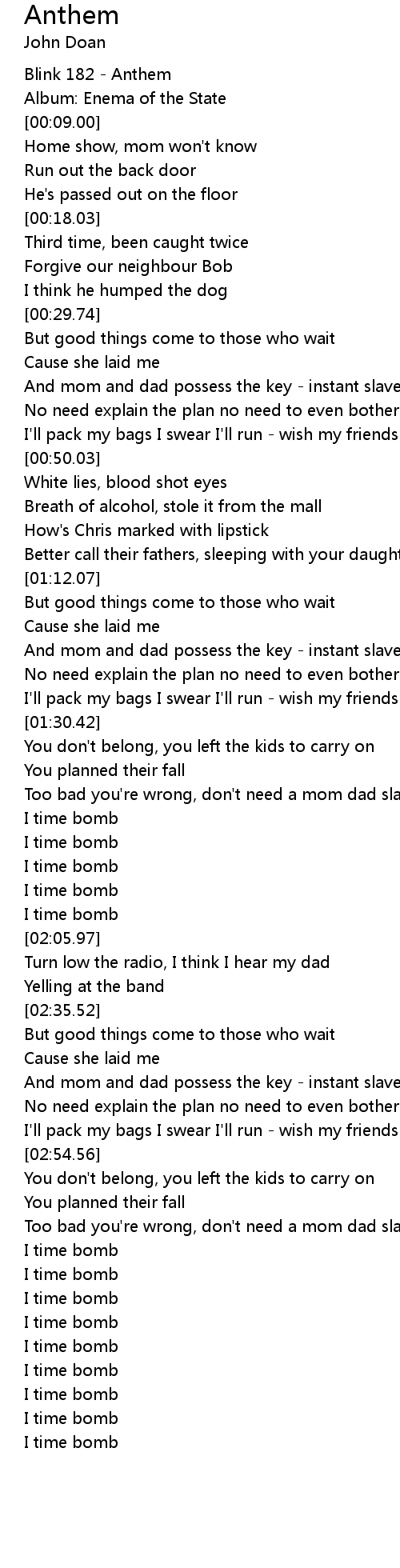 [00:03.00] Blink 182 - Anthem