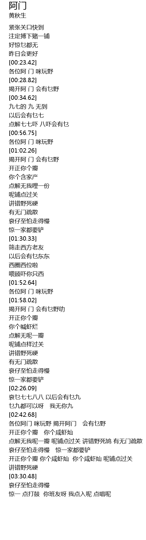 | [01:59.08] | 揭开阿 门 会有乜野叻 |