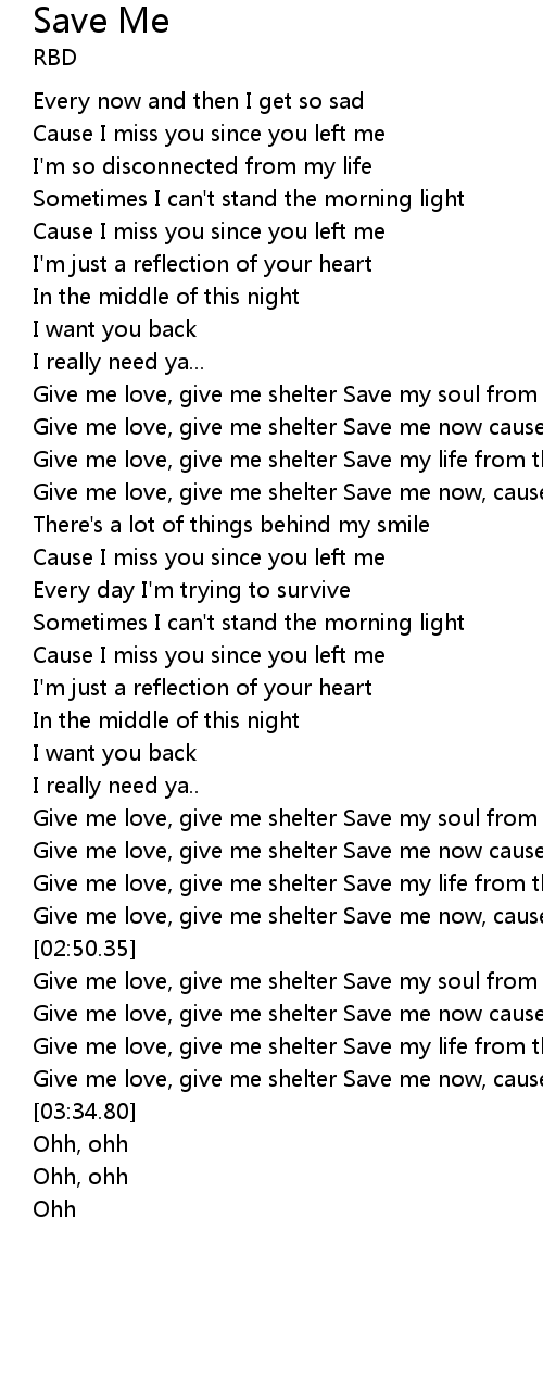 | [02:20.73] | Give me love, give me shelter Save my soul from this loneliness |