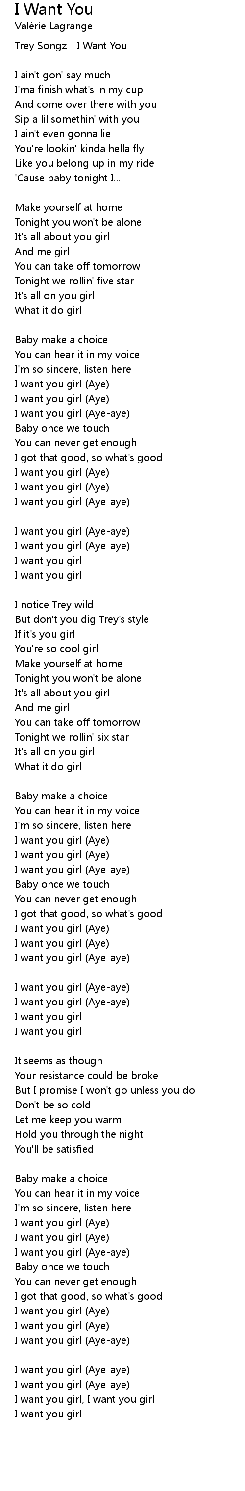 I want you girl (Aye-aye) |