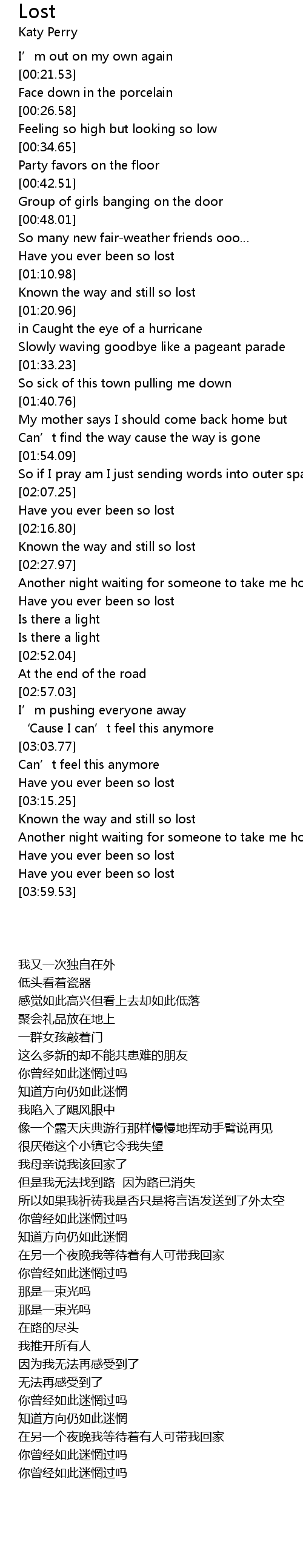 | [03:38.82] | Have you ever been so lost |