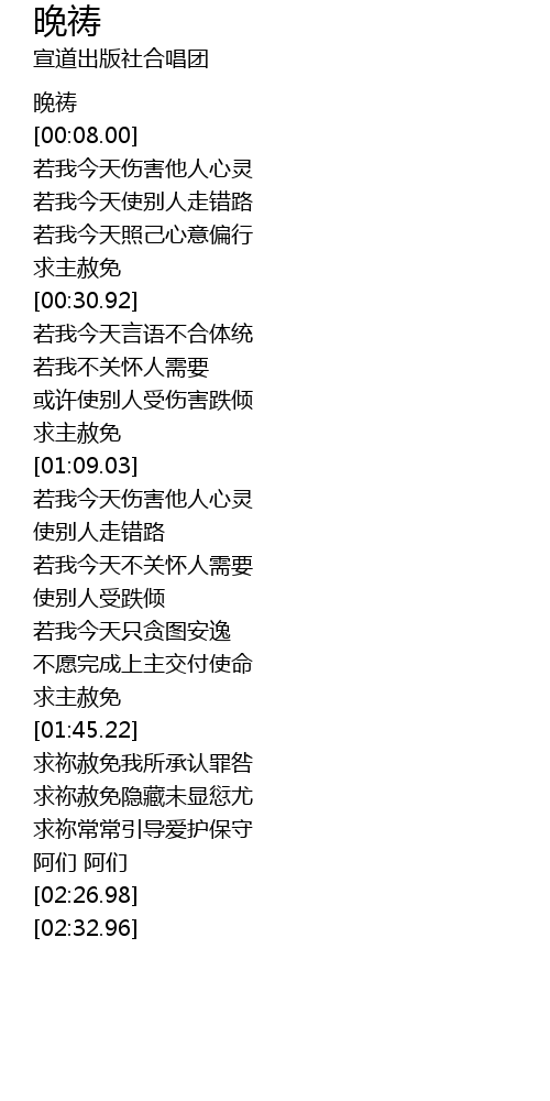 | [01:59.58] | 求祢赦免我所承认罪咎 |
