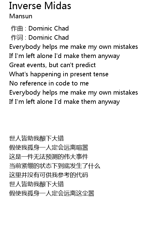 | [00:00.00] | zuò qǔ : Dominic Chad |