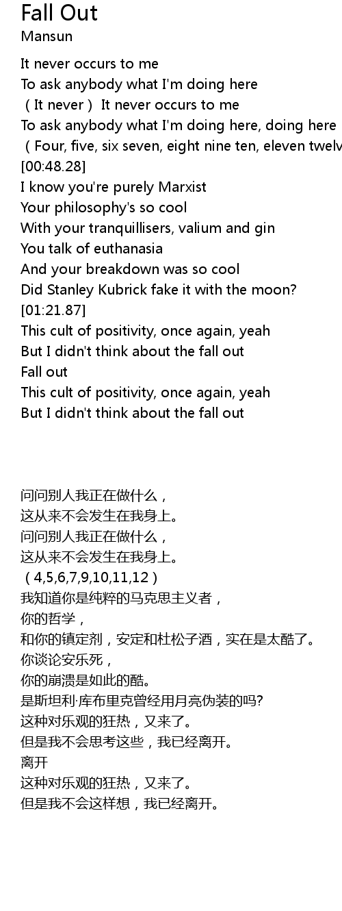 | [01:34.04] | Fall out |