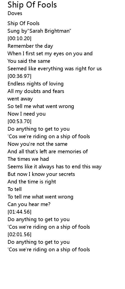 [01:57.41] 'Cos we're riding on a ship of fools
