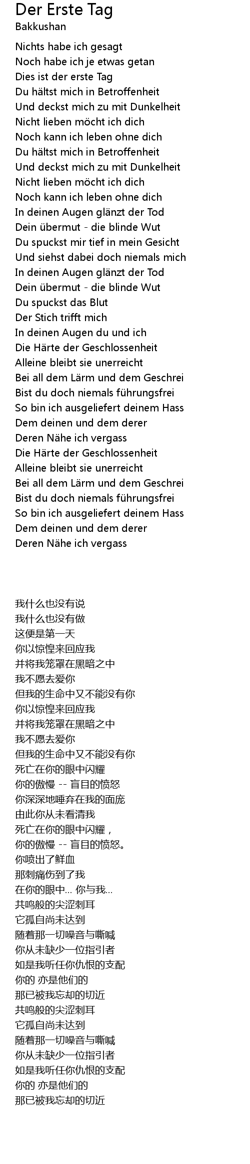 | 歌曲 | Der Erste Tag |