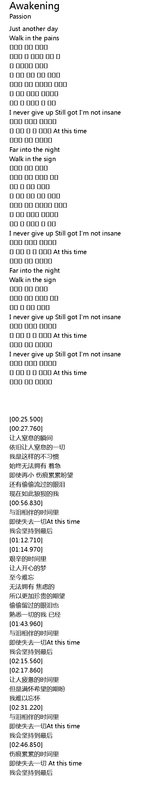 | [02:31.220] | I never give up Still got I' m not insane |