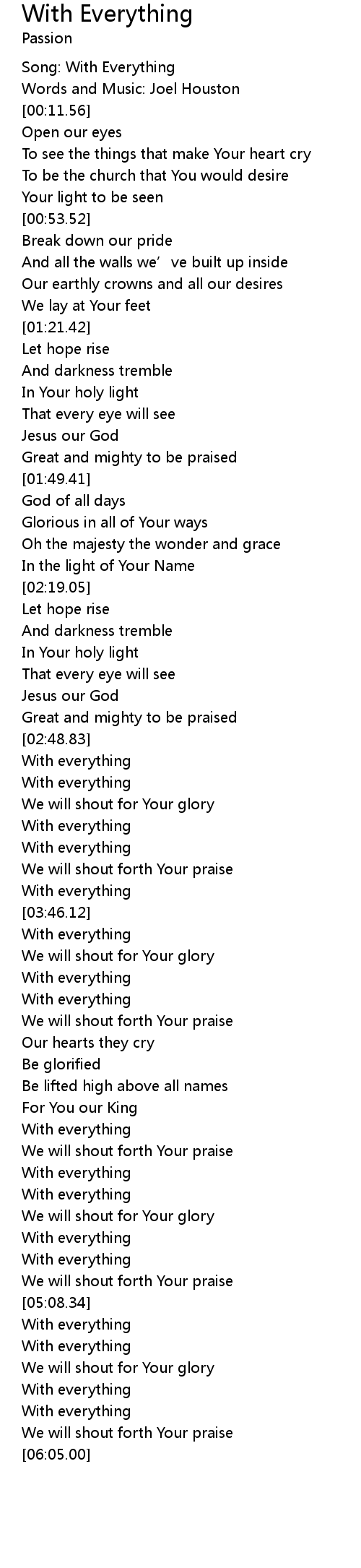 | [02:07.11] | Oh the majesty the wonder and grace |