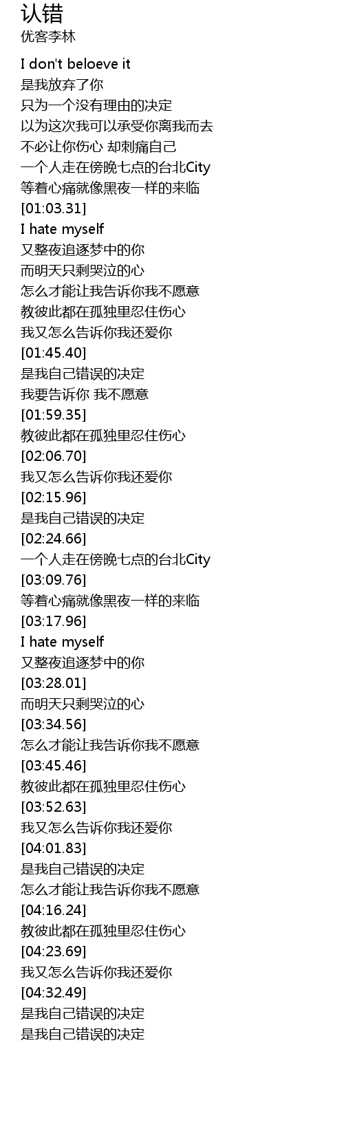 | [03:21.01] | I hate myself |