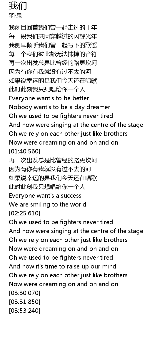 | [02:41.120] | Oh we rely on each other just like brothers |
