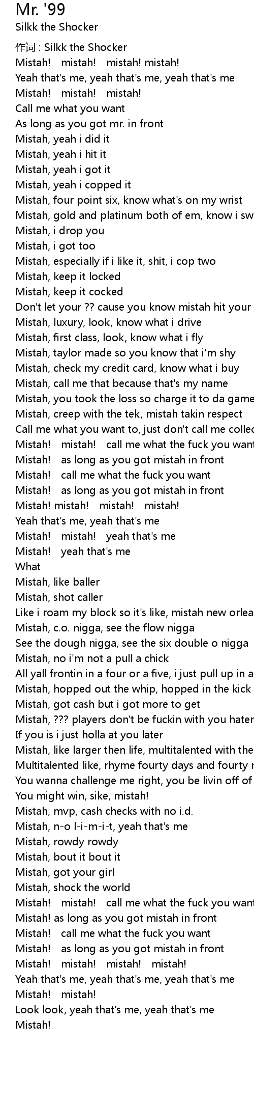 | Mistah, n-o l-i-m-i-t, yeah that's me | |