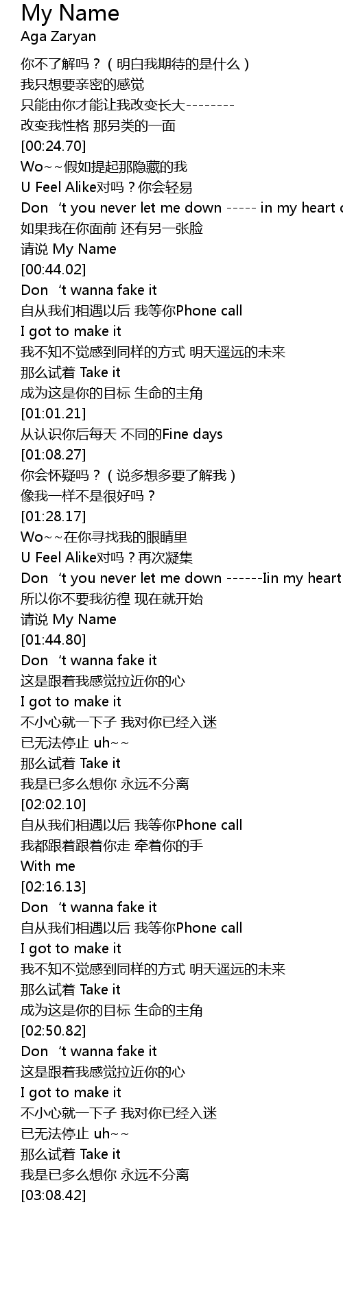 | [01:45.80] | Don‘t wanna fake it |