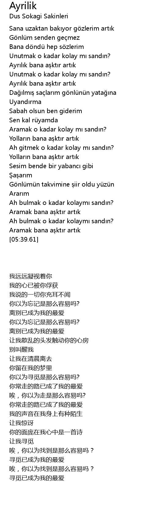 | 歌曲 | Ayrilik |