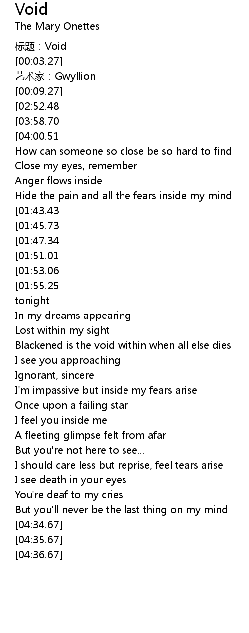 | [00:00.00] | biāo tí: Void |