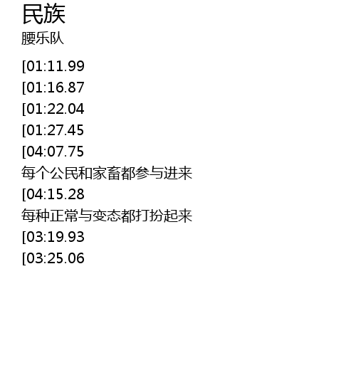 | [04:23.30][04:07.75][02:59.21][02:43.73] | lái lái lái měi gè gōng mín hé jiā chù dōu cān yù jìn lái |