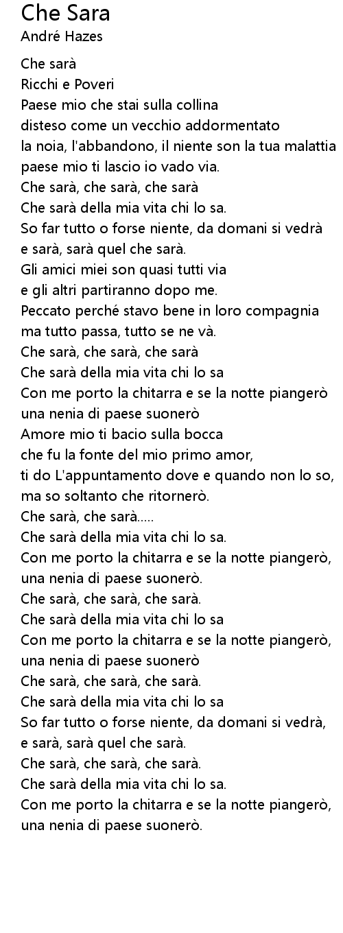 | [03:24.46] | Che sara, che sara, che sara. |