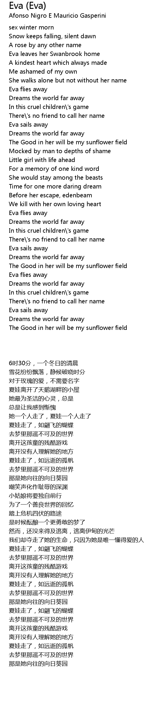 Eva flies away |