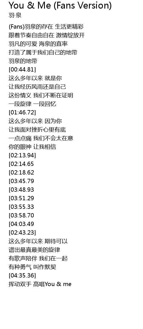 | [04:05.28] | 挥动双手 高唱You & me |