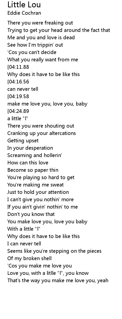 [04:35.19][04:19.58][04:03.91][03:48.26][03:32.56][03:16.88][03:01.18][01:11.04] you make me love you, love you, baby